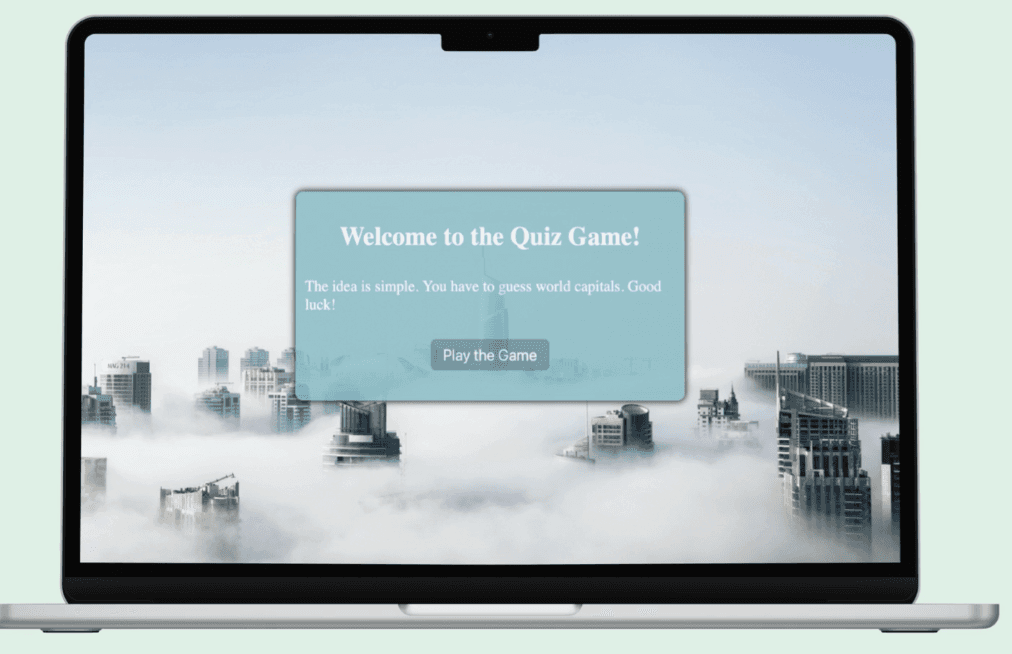 This project is an interactive quiz game that I developed using JavaScript. The game allows users to test their geography knowledge by answering 10 questions about the capitals of various countries. At the end of the game, users are shown the correct answers along with their own responses, allowing them to see how well they performed.
